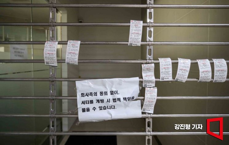 해피머니상품권 발행사 해피머니아이엔씨가 기업 회생 절차 개시를 신청한 28일 서울 강남구 해피머니아이엔씨 본사가 굳게 닫혀 있다.