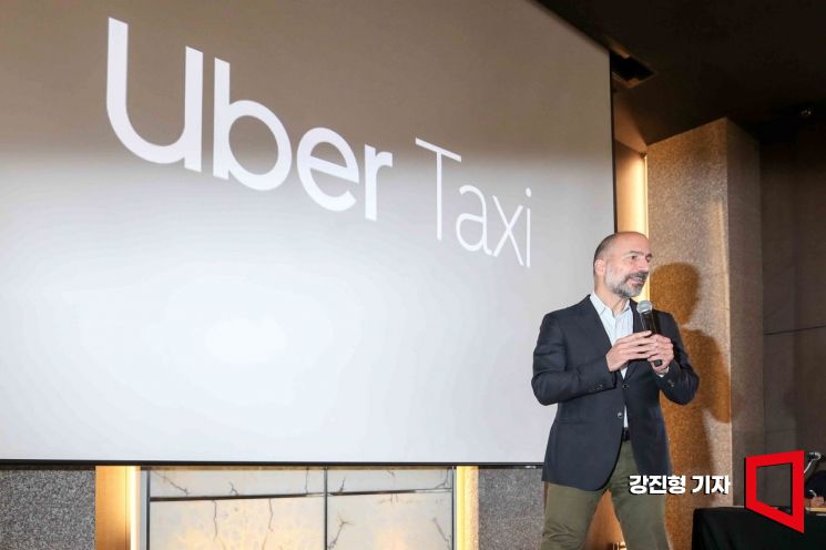 다라 코스로샤히 우버 최고경영자(CEO)가 30일 서울 중구 플라자호텔에서 열린 '우버 글로벌 CEO 방한 기념 미디어 세션'에 참석해 사업 발표 하고 있다.
