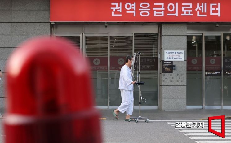 최근 응급실 진료 대란이 연일 이어지고 있는 가운데 강원대병원과 이대목동병원, 세종충남병원에 군의관이 추가 배치된 4일 서울 양천구 이대목동병원 권역응급의료센터앞으로 환자가 이동하고 있다. 사진=조용준 기자 jun21@