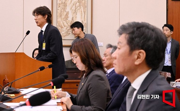 홍명보 축구국가대표팀 감독이 24일 국회에서 열린 문화체육관광위원회의 대한축구협회 등에 대한 현안질의에서 의원 질의에 답하고 있다. 사진=김현민 기자 kimhyun81@