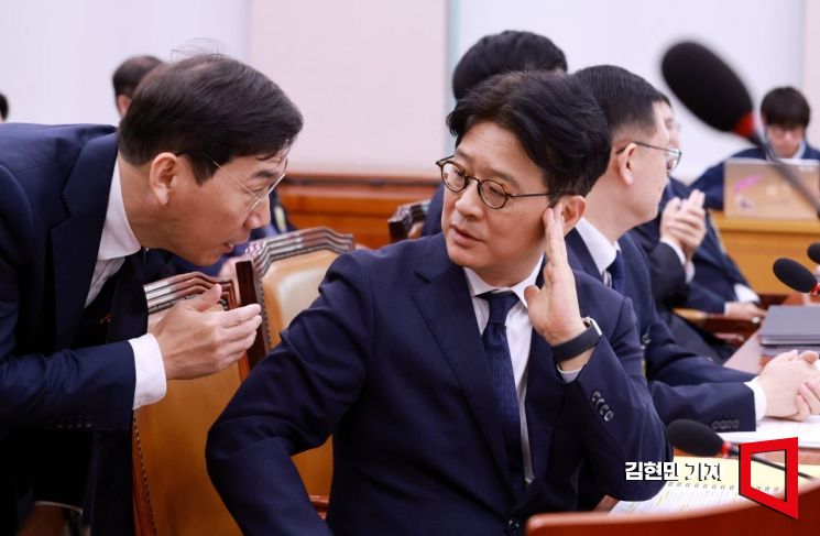 이창수 서울중앙지검장이 18일 국회 법제사법위원회의 서울고검, 수원고검, 서울중앙지검 등에 대한 국정감사에서 관계자와 대화하고 있다. 사진=김현민 기자