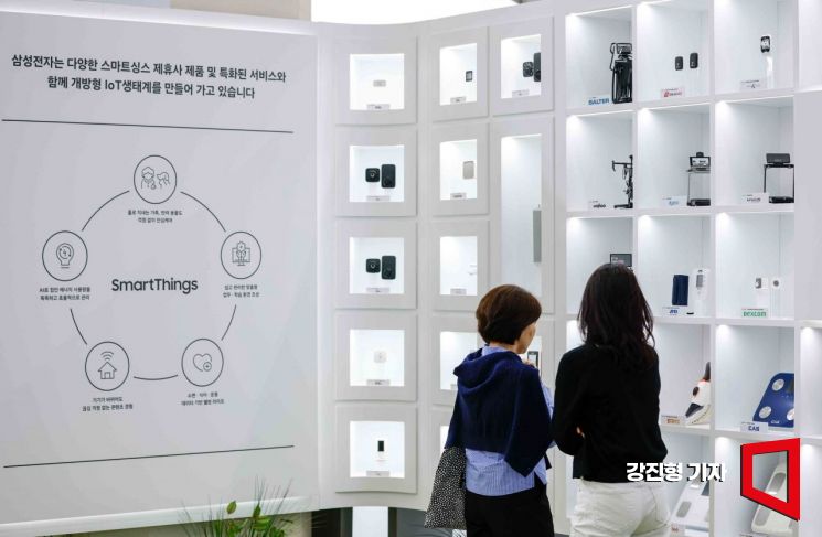 22일 서울 강남구 코엑스에서 열린 '2024 한국전자전'에 삼성전자 스마트싱스 제휴사 제품이 전시돼 있다.