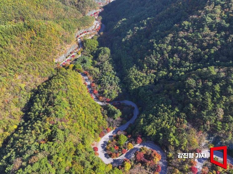 25일 충북 단양 보발재에 단풍이 듬성듬성 물들고 있다. 올해 사상 유례없이 기승을 부린 9월 늦더위와 10월에도 평년보다 높은 기온이 이어진 영향으로 단풍을 붉게 물들이는 '안토시아닌'이 충분히 생성되지 않아 단풍이 늦거나 아예 발생하지 않고 있다.
