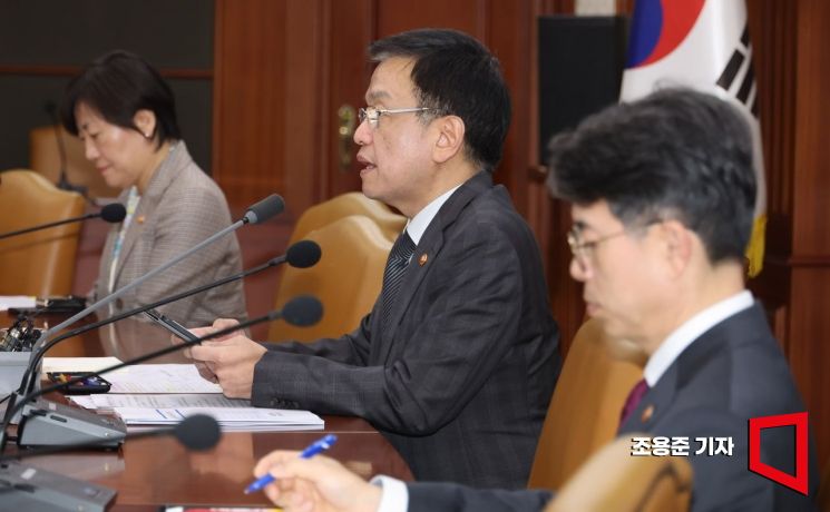 최상목 경제부총리 겸 기획재정부장관이 28일 서울 종로 정부서울청사에서 열린 경제관계장관회의에 참석, 발언을 하고 있다. 사진=조용준 기자