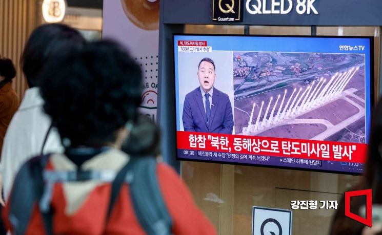 북한이 동해상으로 대륙간탄도미사일(ICBM)로 추정되는 탄도미사일 1발을 발사한 31일 서울역 대합실에서 시민들이 북한 미사일 발사 관련 뉴스를 시청하고 있다.
