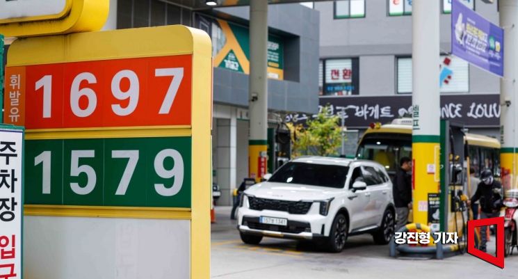 오늘부터 유류세 인하 폭이 줄면서 휘발유는 리터당 42원, 경유는 41원 각각 인상된 1일 서울 한 주유소에서 휘발유를 리터당 1697원, 경유는 리터당 1579원에 판매하고 있다.