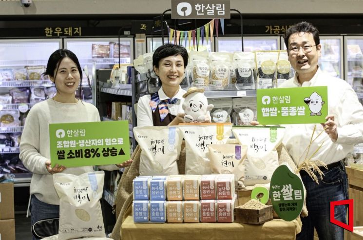 한살림소비자생활협동조합연합회 조합원들이 4일 서울 강남구 한살림 대치 매장에서 풍미와 식감이 다른 품종 쌀을 소개하고 있다. 한살림소비자생활협동조합연합회 제공.