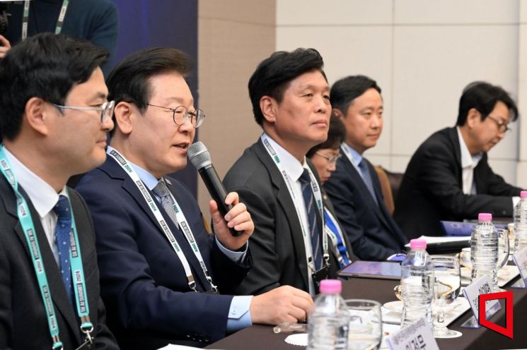 이재명 더불어민주당 대표가 4일 서울 강남구 삼성동 코엑스에서 열린 SK AI서밋-더불어민주당 '글로벌AI기업 정책간담회'에서 모두발언을 하고 있다. 국회사진기자단