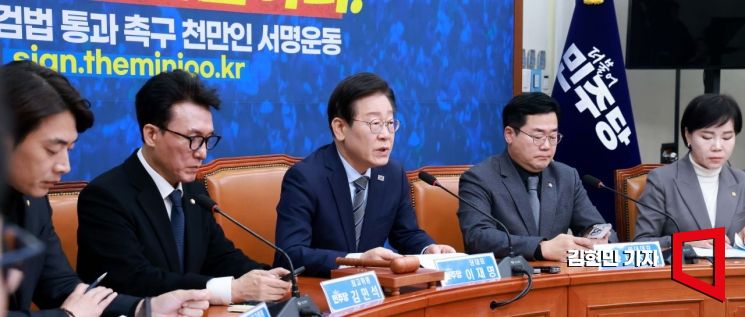 이재명 더불어민주당 대표가 8일 국회에서 열린 최고위원회의에서 발언하고 있다.