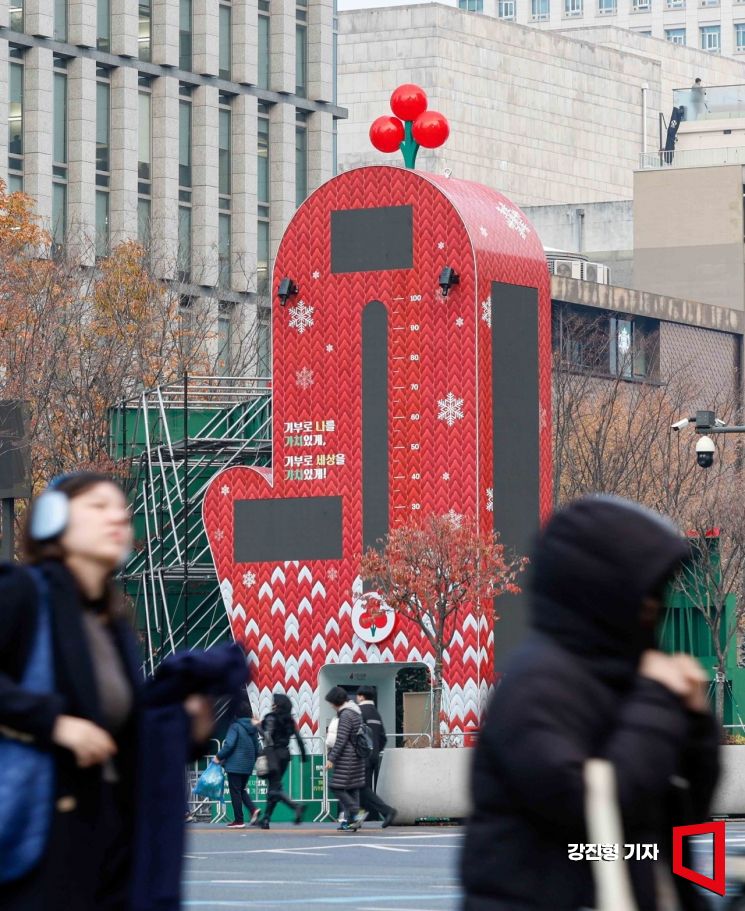 2일 서울 종로구 광화문 광장에 사랑의 온도탑이 설치돼 있다. 사회복지공동모금회 사랑의열매는 올해 희망2025나눔캠페인을 통한 나눔 목표액은 4497억원이며, 내년 1월31일까지 62일간 전개된다고 밝혔다.
