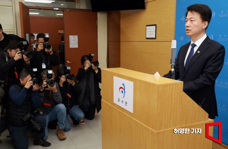 더불어민주당의 최재해 감사원장 탄핵 추진에 대해 2일 감사원에서 최달영 사무총장이 긴급브리핑을 갖고 탄핵 추진에 대한 입장문을 읽고 있다.