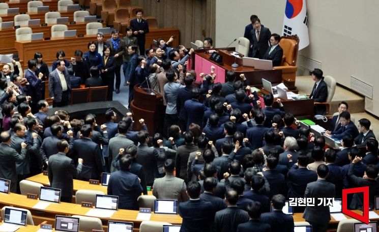 [포토] 국힘, 국회의장석 둘러싸고 집단항의
