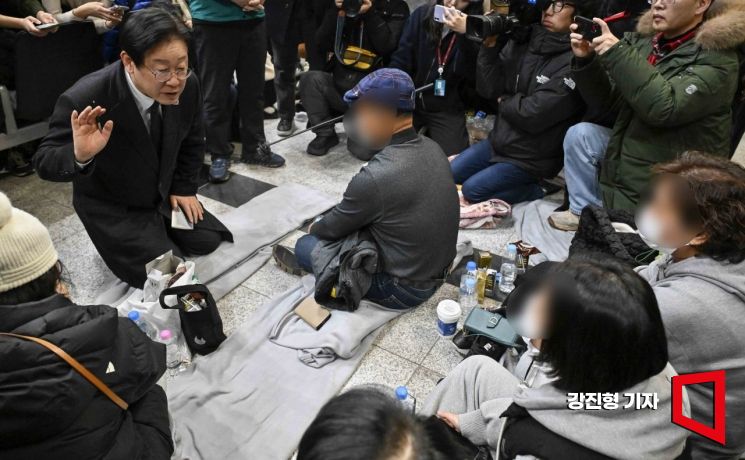 이재명 더불어민주당 대표가 29일 전남 무안군 무안국제공항을 찾아 유가족들을 위로하고 있다.