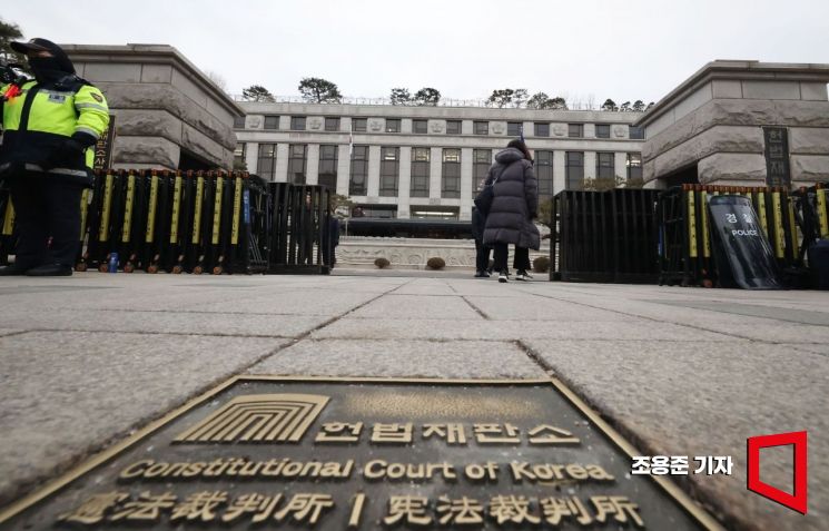 헌법재판소의 윤석열 대통령 탄핵심판 2차 변론기일인 16일 서울 종로구 헌법재판소에 직원들이 출근하고 있다. 윤석열 대통령 측은 이날 오후 예정된 탄핵심판 2차 변론을 연기해달라고 헌재에 요청했다.