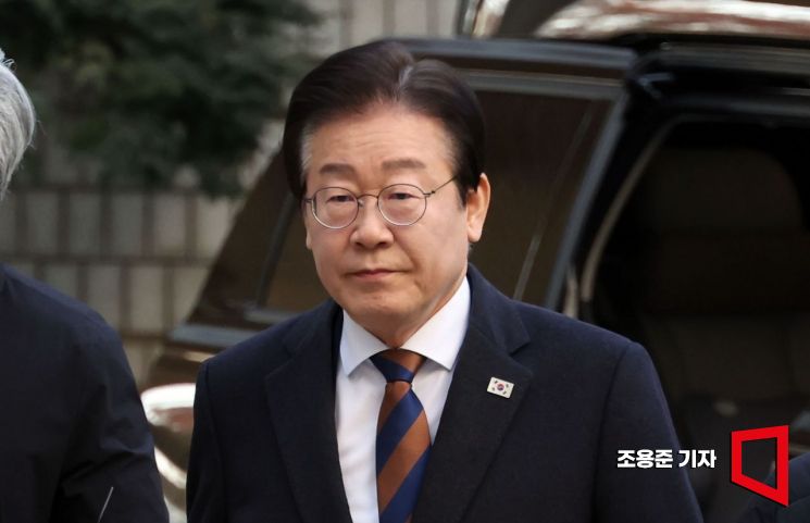 이재명 더불어민주당 대표가 17일 서울 서초구 서울중앙지방법원에서 열린 대장동 배임 및 성남FC 뇌물 의혹 64차 공판에 출석하고 있다.