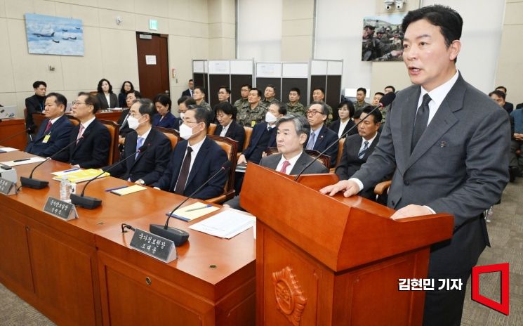 김상훈 대통령경호처 차장이 22일 국회에서 열린 '12·3 비상계엄 사태의 진상규명을 위한 국회 국정조사 특별위원회' 1차 청문회에 증인으로 출석해 안규백 위원장의 고위공직자범죄수사처의 대통령 관저 압수수색 협조 요청에 대해 답하고 있다.