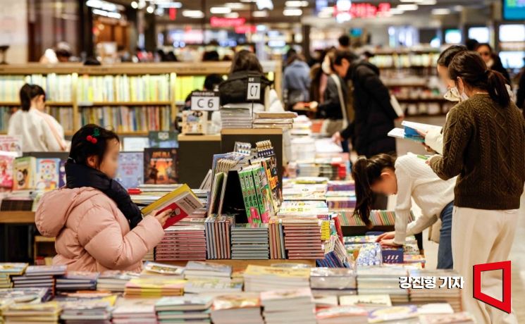 신학기를 앞둔 20일 서울 종로구 교보문고 광화문점을 찾은 어린이들이 책을 보고 있다.