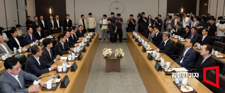 김문수 국민의힘 대선후보가 26일 경기 평택시 고덕동 삼성전자 반도체 공장을 찾아 발언을 하고 있다.