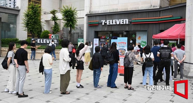 28일 서울 송파구 세븐일레븐 챌린지스토어점에서 시민들이 이스타항공이 세븐일레븐ㆍ하림과 함께 출시한 '도쿠시마 라면'을 시식하기 위해 줄을 서고 있다. 이스타항공이 일본 도쿠시마 노선을 홍보하기 출시한 이 라면은 28일부터 전국 세븐일레븐에서 구매할 수 있으며, 6월부터는 이스타항공 기내에서도 만나볼 수 있다.
