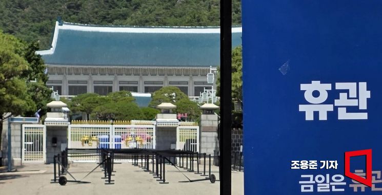 이재명 대통령이 집무실을 청와대로 이전할 예정인 가운데 청와대 개·보수 작업이 완료될 때까지는 당분간 용산 대통령실로 출근하게 된다. 윤석열 전 대통령이 2022년 5월 10일 대통령 집무실을 용산 국방부 청사로 공식 이전한 지 3년여 만에 '용산 시대'를 마감한다. 4일 이재명 대통령 취임날 휴관일을 맞은 청와대의 모습.