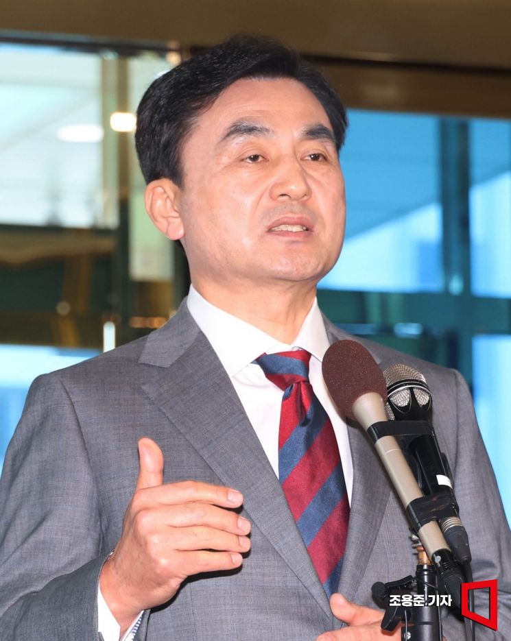 안규백 국방부장관 후보자가 27일 서울 용산구 육군회관에 마련된 인사청문회 준비 사무실로 첫 출근하며 취재진의 질문에 답하며 우리 군인들이 최고라며 엄지를 들어 보이고 있다.