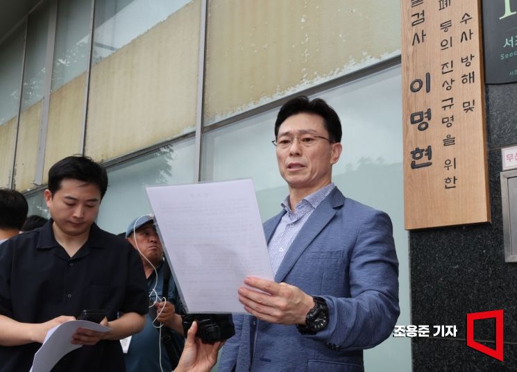 임성근 전 해병대 1사단장이 2일 서울 서초구 서초한샘빌딩에 마련된 순직해병 특별검사 사무실에 피의자 신분으로 출석하며 입장문을 발표하고 있다. 이날 현판식을 시작으로 수사를 공식 개시한 특검은 첫날부터 핵심 피의자인 임 전 사단장을 소환 조사했다.