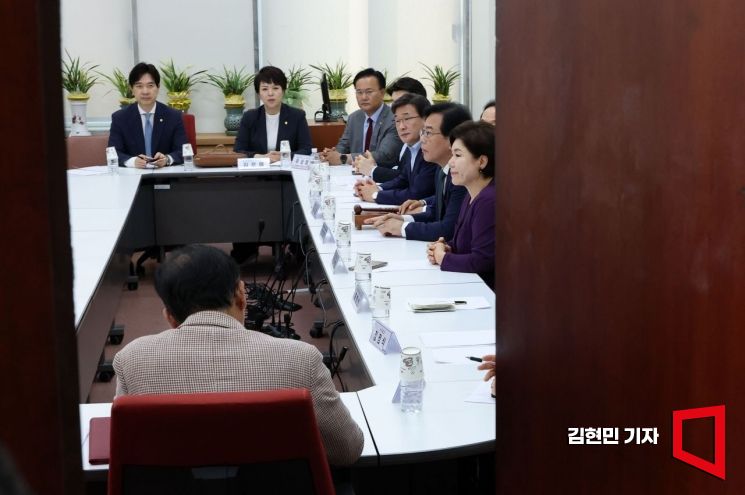 송언석 국민의힘 비상대책위원장 겸 원내대표 등이 9일 국회 원내대표 회의실에서 혁신위원장 임명을 위한 긴급 비상대책위원회의를 하고 있다.