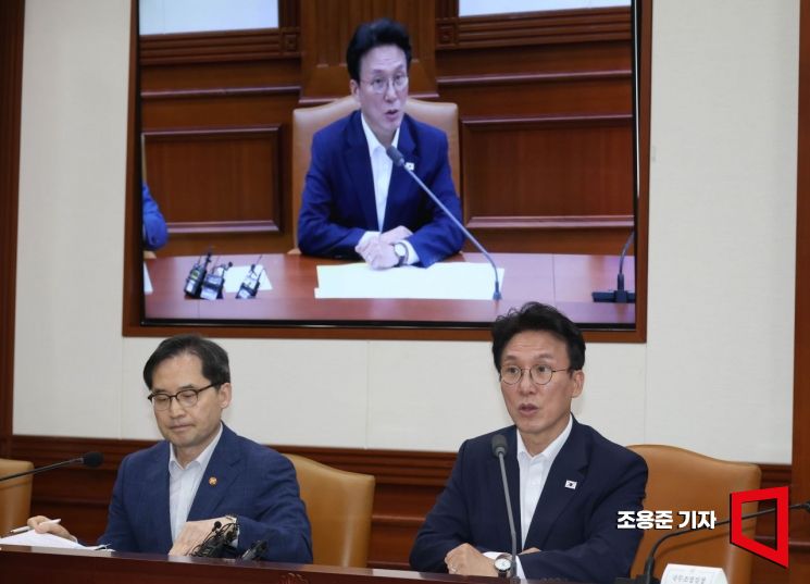 김민석 국무총리가 10일 서울 종로구 정부서울청사에서 열린 첫 국정현안관계장관회의에 참석, 민생, 폭염 등 현안에 대해 발언하고 있다.