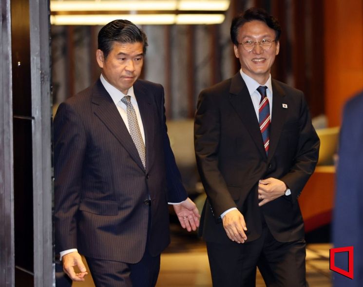 김민석 국무총리(오른쪽)와 제임스 김 암참 회장이 22일 서울 여의도 콘래드서울 호텔에서 열린 주한미국상공회의소(AMCHAM KOREA) 세미나에 참석하고 있다. 청사사진기자단