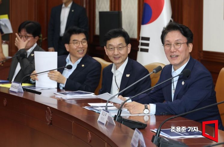 김민석 국무총리가 23일 서울 종로구 정부서울청사에서 기업인, 인프라 및 콘텐츠 분야별 전문가 등이 참석한 가운데 열린 APEC 점검 종합보고에서 발언 하고 있다.
