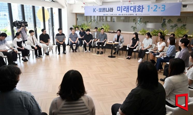 김민석 국무총리가 24일 서울 성동구 상상플래닛에서 열린 제1차 K-토론나라 '미래대화 1·2·3'에 참석해 모두 발언을 하고 있다. 청사사진기자단