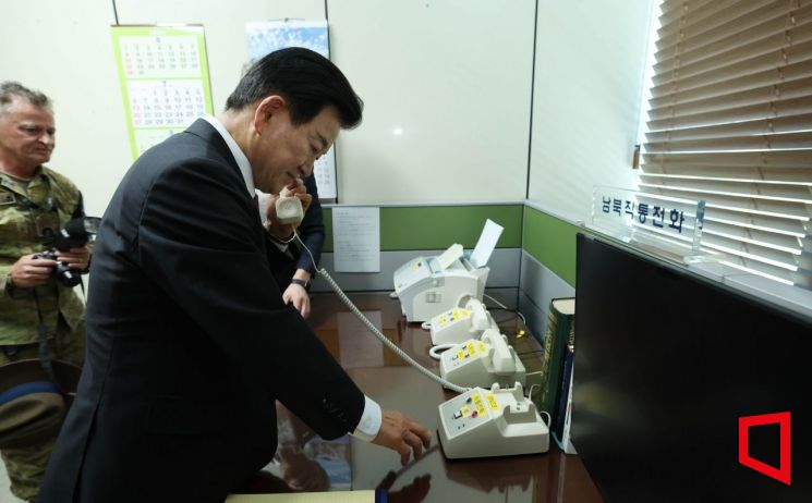 정동영 신임 통일부 장관이 25일 취임식을 앞두고 판문점을 찾아 남북 연락 채널을 점검하고 있다. [통일부제공]