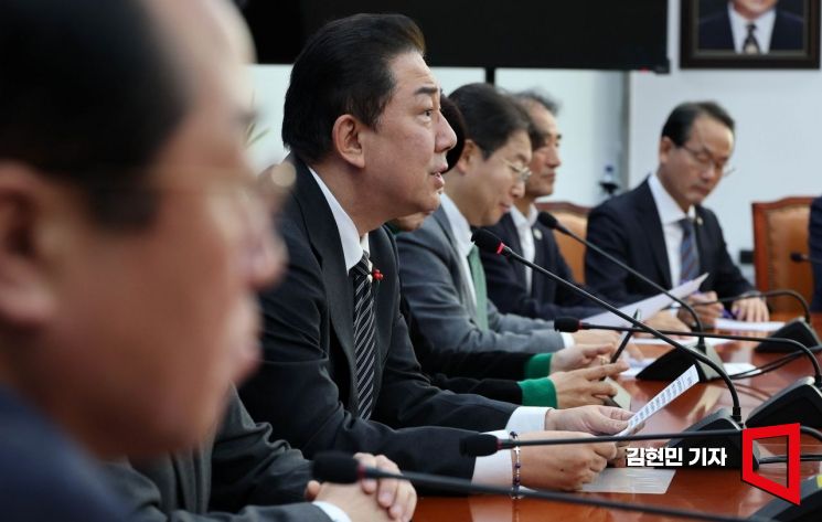 김병기 더불어민주당 원내대표가 4일 국회에서 열린 정책조정회의에서 발언하고 있다.