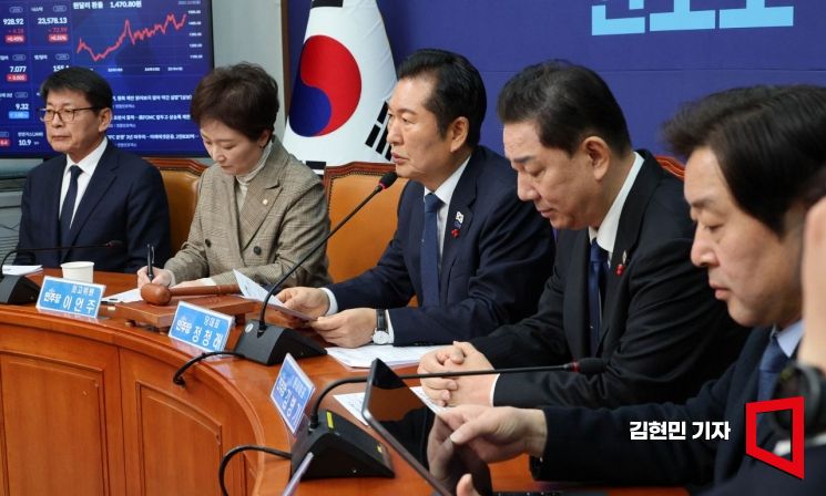 정청래 더불어민주당 대표가 8일 국회에서 열린 최고위원회의에서 발언하고 있다.