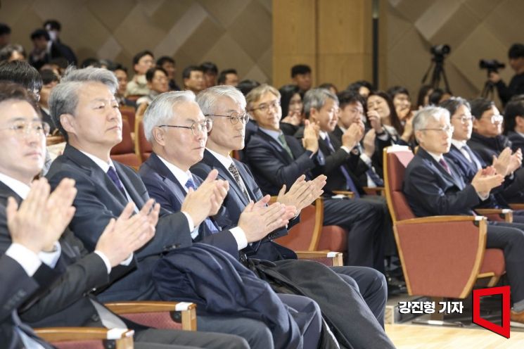 천대엽 법원행정처장(왼쪽 네 번째)이 9일 서울 서초구 서울법원종합청사 청심홀에서 열린 ‘국민을 위한 사법제도 개편 공청회’에 참석하고 있다.