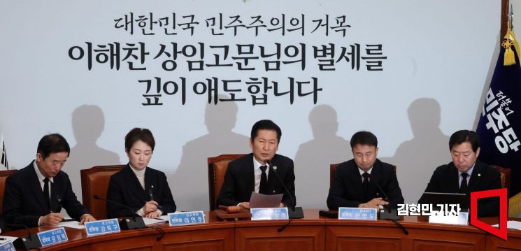 정청래 더불어민주당 대표가 26일 국회에서 열린 최고위원회의에서 발언하고 있다.