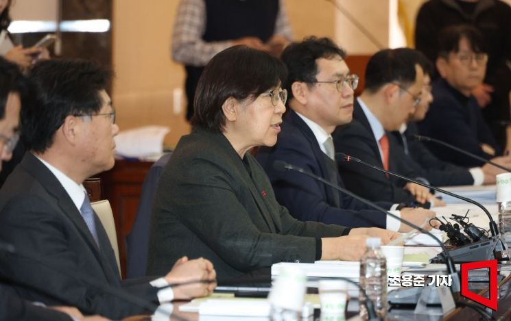 정은경 보건복지부 장관이 26일 서울 종로구 정부서울청사에서 열린 2026년 제1차국민연금기금운영위원회에 참석, 발언을 하고 있다.