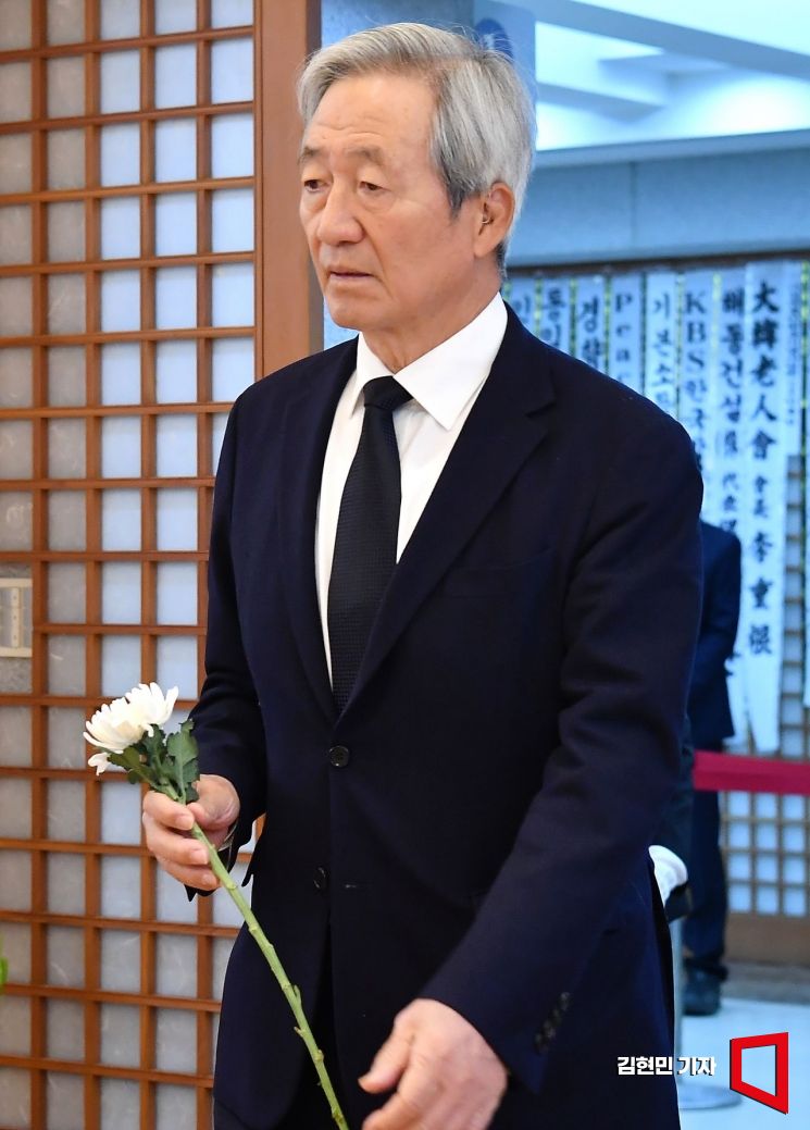 정몽준 아산재단 이사장이 28일 서울 종로구 서울대학교병원 장례식장에 마련된 故 이해찬 전 국무총리의 빈소에서 조문을 하고 있다.