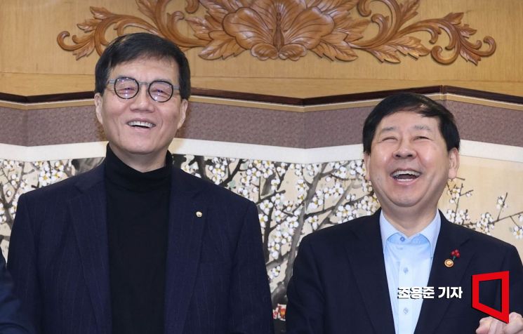 구윤철 부총리 겸 재정경제부 장관 등 경제수장들이 29일 서울 종로구 정부서울청사에서 열린 확대거시경제금융회의에서 참석해 기념 촬영을 하고 있다. 왼쪽부터 이찬진 금감원장, 이창용 한국은행 총재, 구 부총리, 이억원 금융위원장.