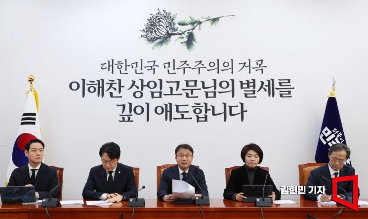 한병도 더불어민주당 원내대표가 29일 국회에서 열린 정책조정회의에서 발언하고 있다.
