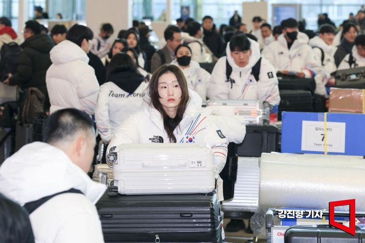 제25회 2026 밀라노·코르티나담페초 동계올림픽에 참가하는 쇼트트랙 최민정과 황대헌을 비롯한 선수단이 30일 인천국제공항 제2여객터미널에서 밀라노로 출국하기 위해 이동하고 있다.