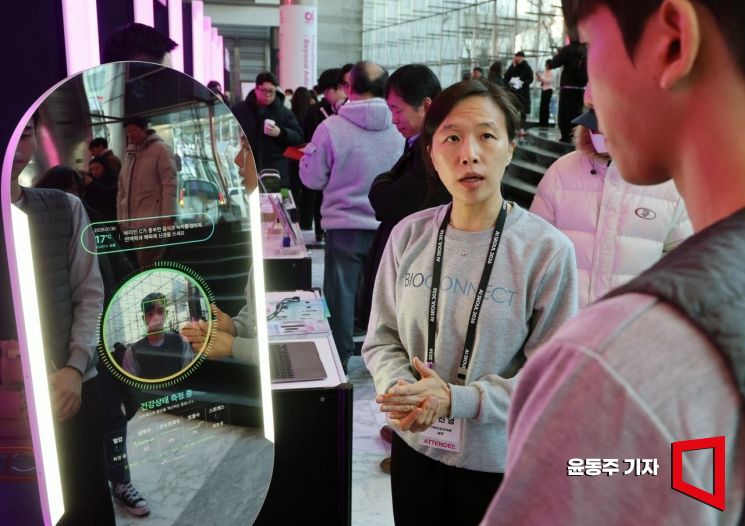 30일 서울 강남구 코엑스에서 열린 'AI SEOUL 2026' 콘퍼런스에 참석한 참석자들이 AI 비접촉 생체정보 측정 플랫폼-바이탈 트래커를 체험해보고 있다. 이날 콘퍼런스에 참석한 오세훈 서울시장은 '피지컬 AI 선도도시' 비전을 선포하고 서울 전반을 기술 실증의 무대로 개방한다고 밝혔다.