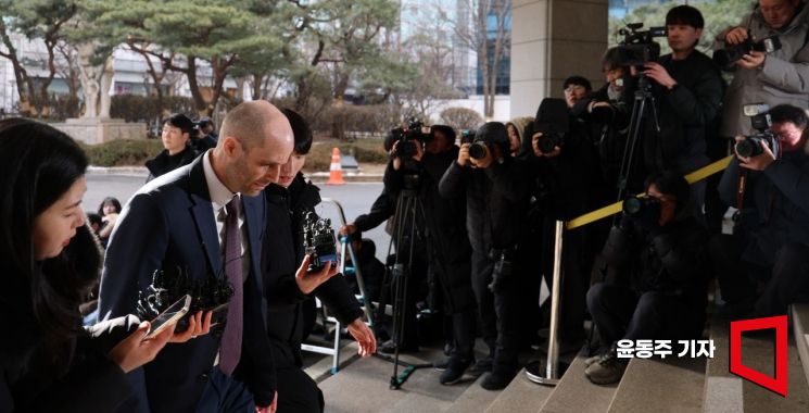 해럴드 로저스 쿠팡 한국법인 임시 대표가 30일 서울경찰청으로 출석하고 있다.