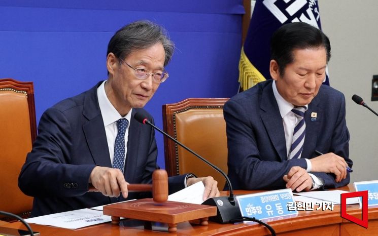 유동수 더불어민주당 중앙위원회 부의장이 2일 국회에서 열린 제5차 중앙위원회의를 주재하고 있다. 2026.2.2 김현민 기자