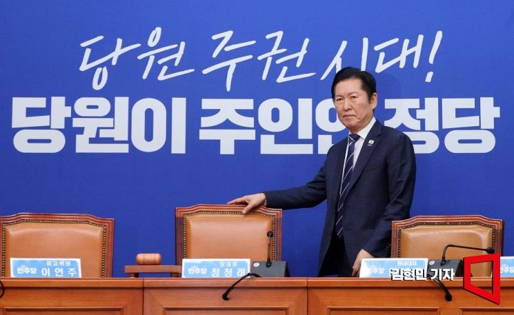 정청래 더불어민주당 대표가 4일 국회에서 열린 최고위원회의에 참석하고 있다.