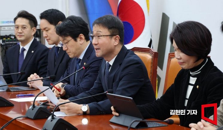 한병도 더불어민주당 원내대표가 5일 국회에서 열린 정책조정회의에서 발언하고 있다.