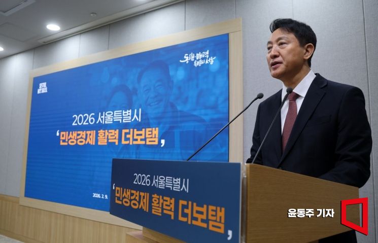 오세훈 서울시장이 9일 서울시청에서 '2026 서울시 민생경제 활력 더보탬' 브리핑을 하고 있다.