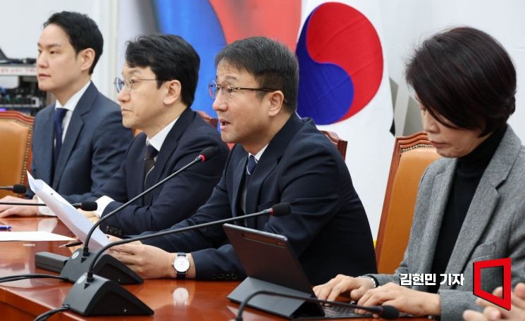 한병도 더불어민주당 원내대표가 10일 국회에서 열린 원내대책회의에서 발언하고 있다.