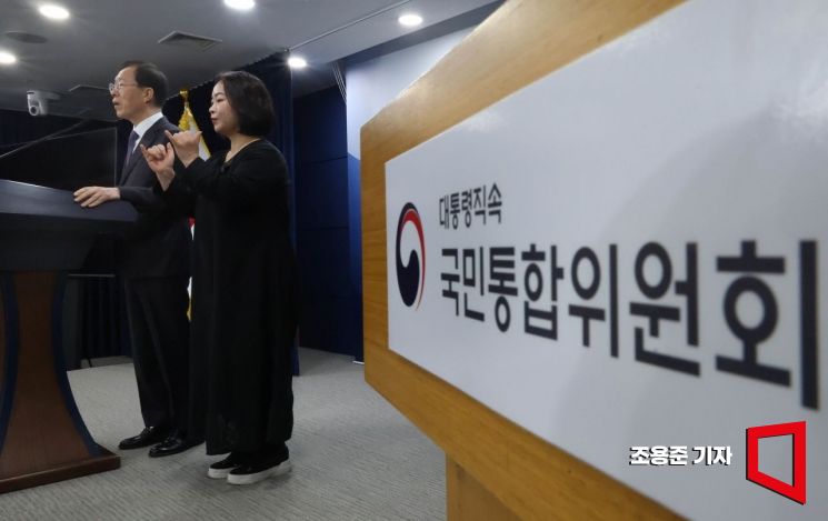 이석연 대통령직속 국민통합위원장이 11일 서울 종로구 정부서울청사에서 국민통합을 위한 5대 사회갈등 국민인식조사 결과를 발표하고 있다.