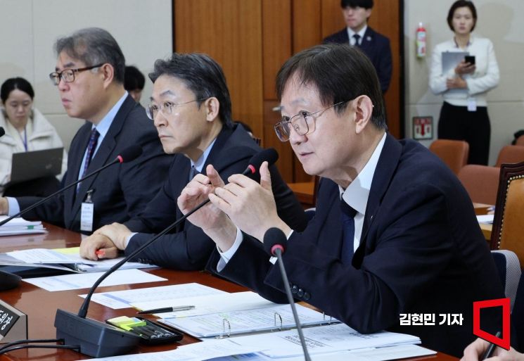 이찬진 금감원장이 11일 국회 정무위원회에서 열린 빗썸 관련 긴급 현안질의에 출석해 의원 질의에 답변하고 있다.